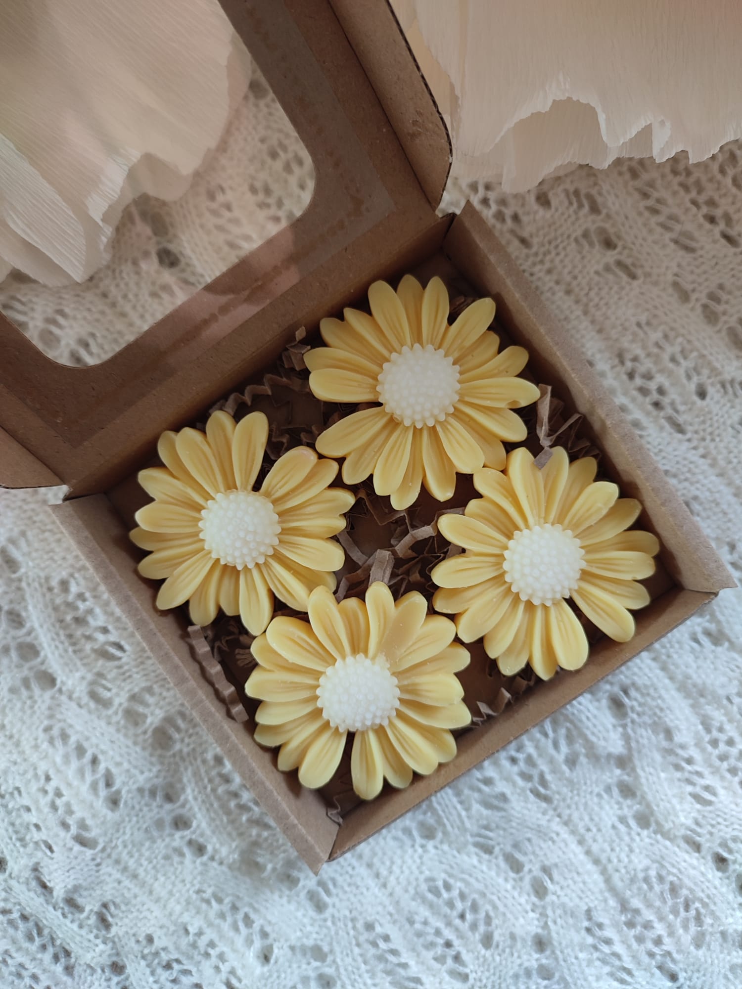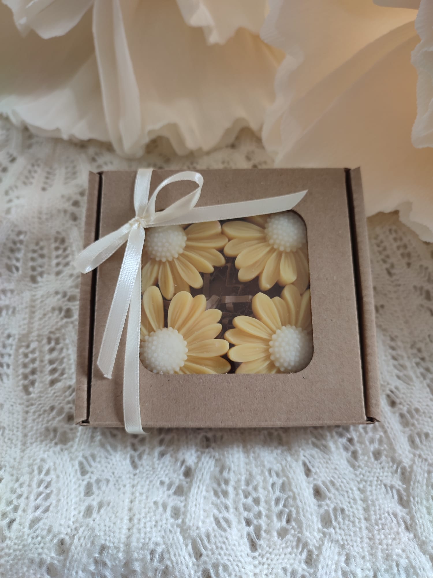 Box prezentowy – zestaw 4 sztuk wosków do kominka Stokrotka żółta
