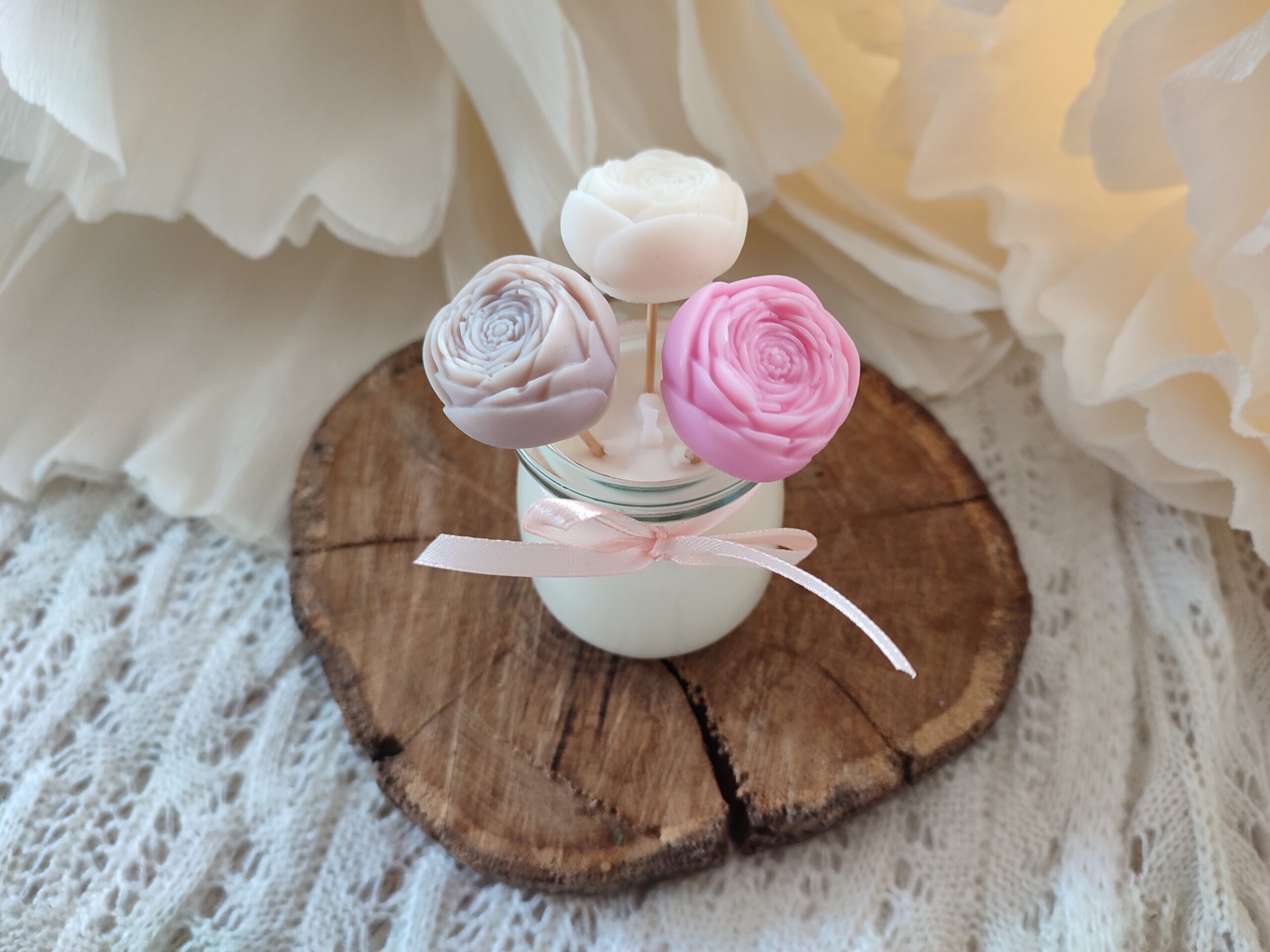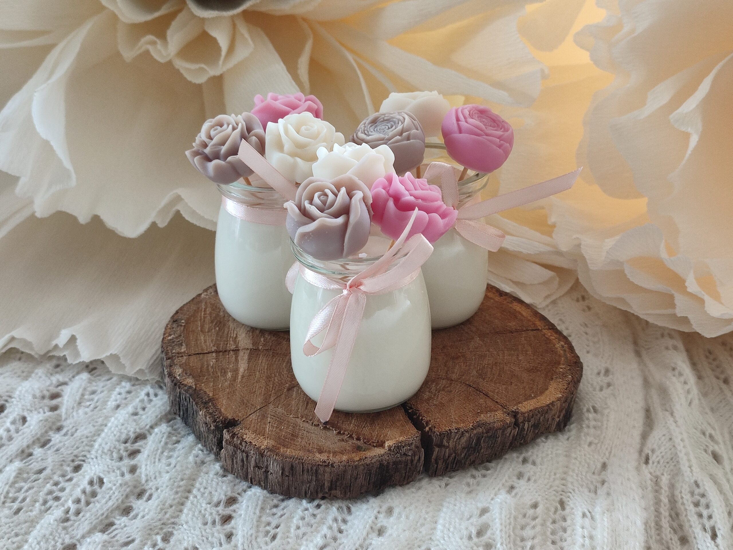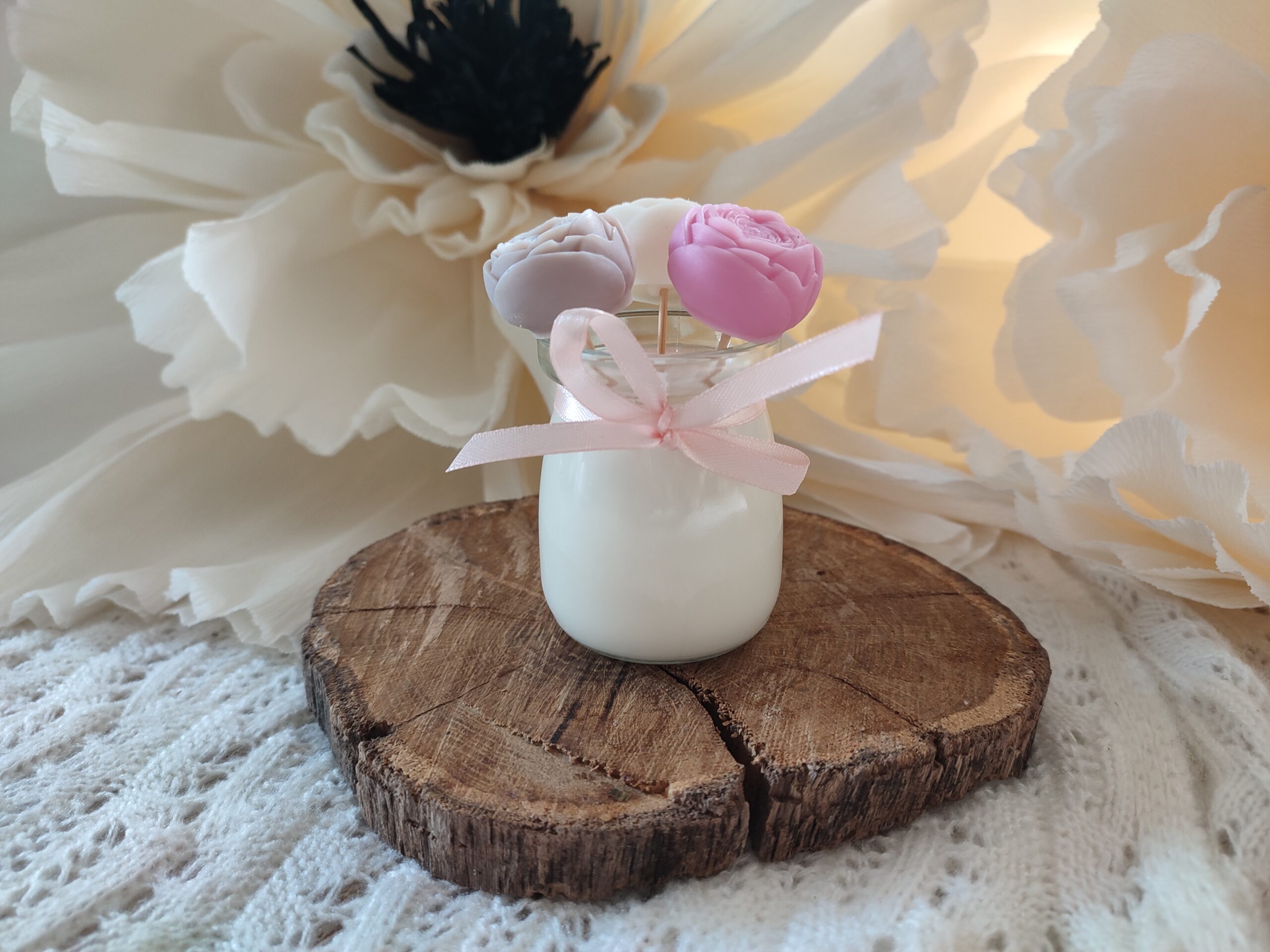 Świeca 120 ml o zapachu róży plus 3 małe różyczki